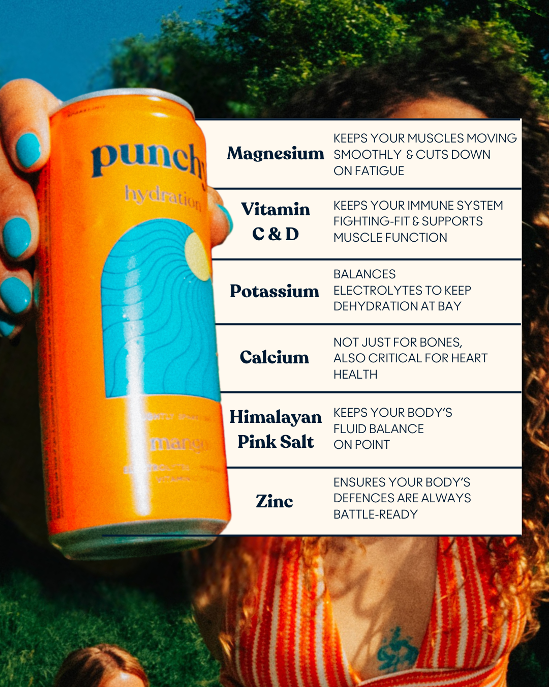 “ The combination and dosages of electrolytes, vitamins and minerals is spot on and the added immune benefits will be a game-changer in the current market place. With many of us struggling to meet our daily water quota it can leave us feeling depleted in energy and focus so punchy’s range can be a supercharged way to meet our needs. ”